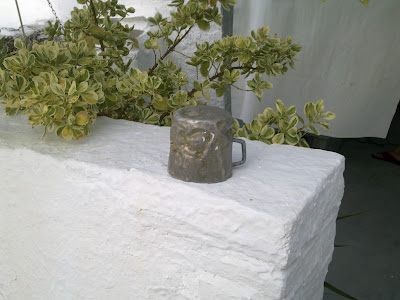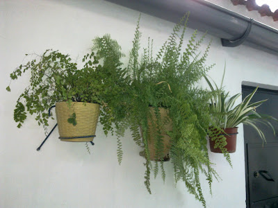 | Macetas sobre el encalado del patio |